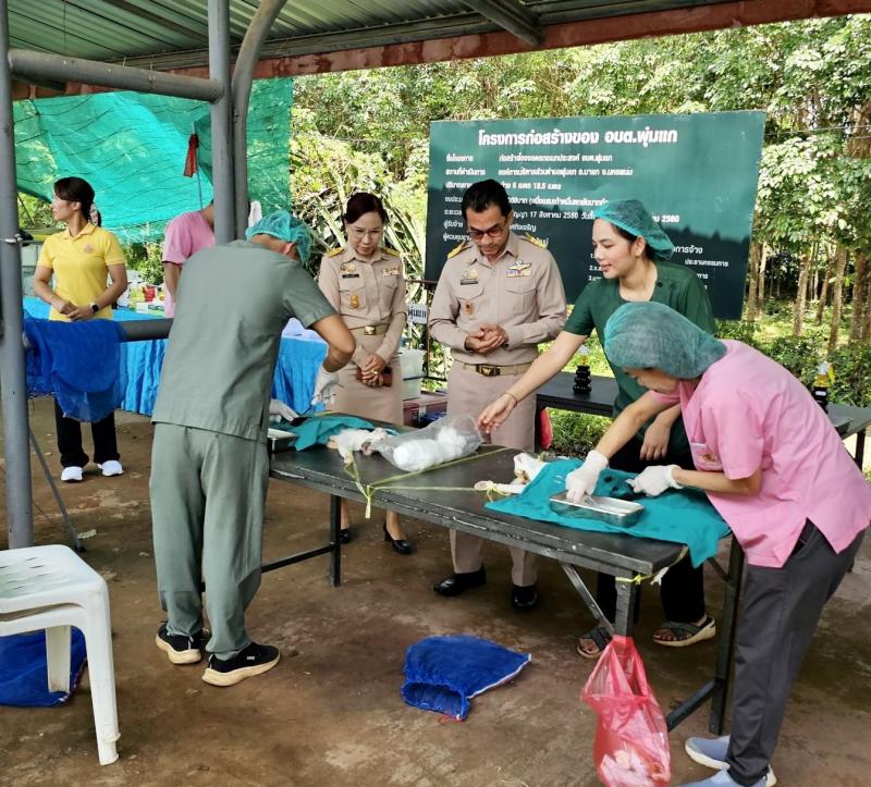 กิจการทางด้านสาธารณสุข…. วันที่ 29 กรกฎาคม 2568: นายยงชัย รักษาพล ( นายกองค์การบริหารส่วนตำบลพุ่มแก ) จัดโครงการ”ทำหมันสุนัขและแมว” เป็นกิจการบริการประชาชนทางด้านสาธารณสุขเพื่อเป็นการควบคุมไม่ให้สัตว์เลี้ยงมีลูกมากเกินไปและยังสามารถควบคุมจำนวนประชากรให้กับสัตว์เลี้ยงได้อย่างถาวร