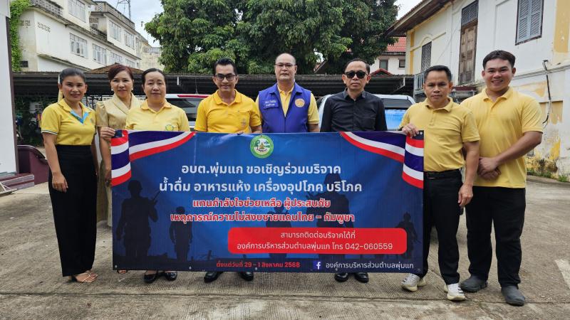 วันที่ 31 กรกฎาคม 2568 นายยังชัย รักษาพล นายกองค์การบริหารส่วนตำบลพุ่มแก พร้อมด้วยเจ้าหน้าที่ ส่งมอบสิ่งของบริจาค ช่วยเหลือผู้ประสบภัย จากเหตุปะทะชายเเดนไทย - เขมร ที่ตั้งศูนย์เปิดรับบริจาคจากพี่น้องประชาชนตำยบพุ่มแก ณ ที่ว่าการอำเภอนาแก โดยมีนายอิสรา โพธิ์เงิน นายอำเภอนาแก เป็นผู้รับ เพื่อดำเนินการตามวัตถุประสงค์ต่อไป